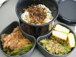 最後の夕飯はふりかけ付き。