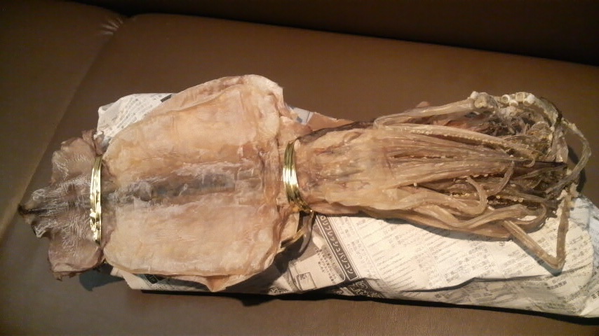 そうそう、待ちに待ったするめちゃんが送られてきた!数年前から奥さん友人から毎年買っている、とびきりうまいするめ。大きく肉厚もあり、できたて。